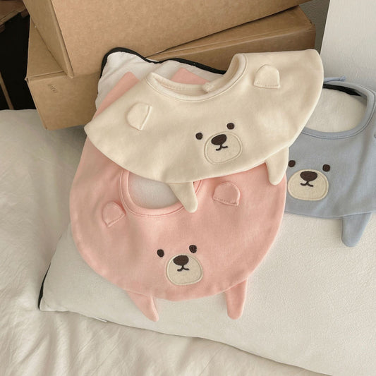 【預購】可愛治癒立體熊熊 純棉 圓形口水巾