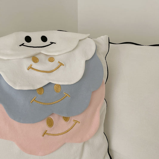 【預購】立體微笑笑臉刺繡 純棉 花瓣形口水巾