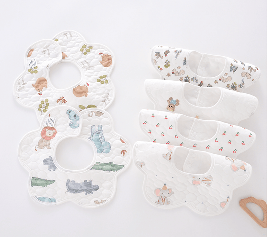 【預購】嬰幼兒 雙面花紋 純棉加厚花瓣造型口水巾 (自選1套5條/單購)