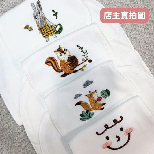 【預購 / 現貨】北歐風 春夏季3層棉紗 動物刺繡吸汗背巾 (單購 / 自選1套3條)
