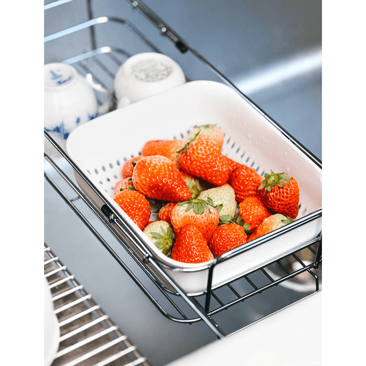 【預購】日本製 SHIMOMURA 不銹鋼超薄瀝水籃 (附餐具及杯架)