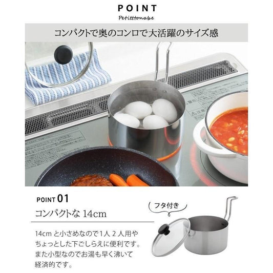 【預購】 🇯🇵日本製 Arnest 不銹鋼可油炸小鍋玻璃蓋 (14ᴄᴍ)