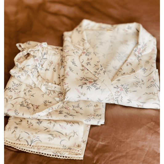 【預購】秋冬 溫柔薔薇碎花V領 長袖睡衣家居服套裝