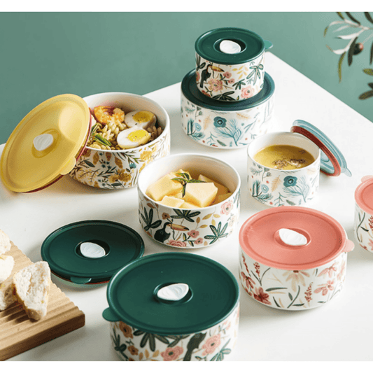 【預購】森林花花帶蓋陶瓷保鮮碗 (3入-大中小)