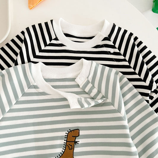 【現貨】冬季嬰兒 條紋恐龍刺繡長袖連身衣爬服 / 爬服定價 HK$59.00定價單價 每-