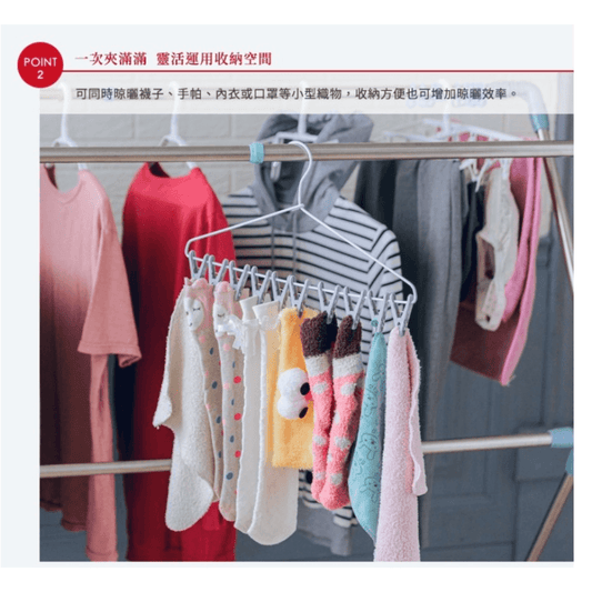 【預購】日本進口 小久保KOKUBO 多用途一秒快速收襪晾曬架(10夾)
