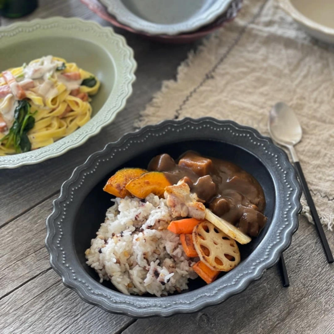 咖哩和義大利麵的種類繁多,選擇與菜餚顏色相配的碗色會很有趣