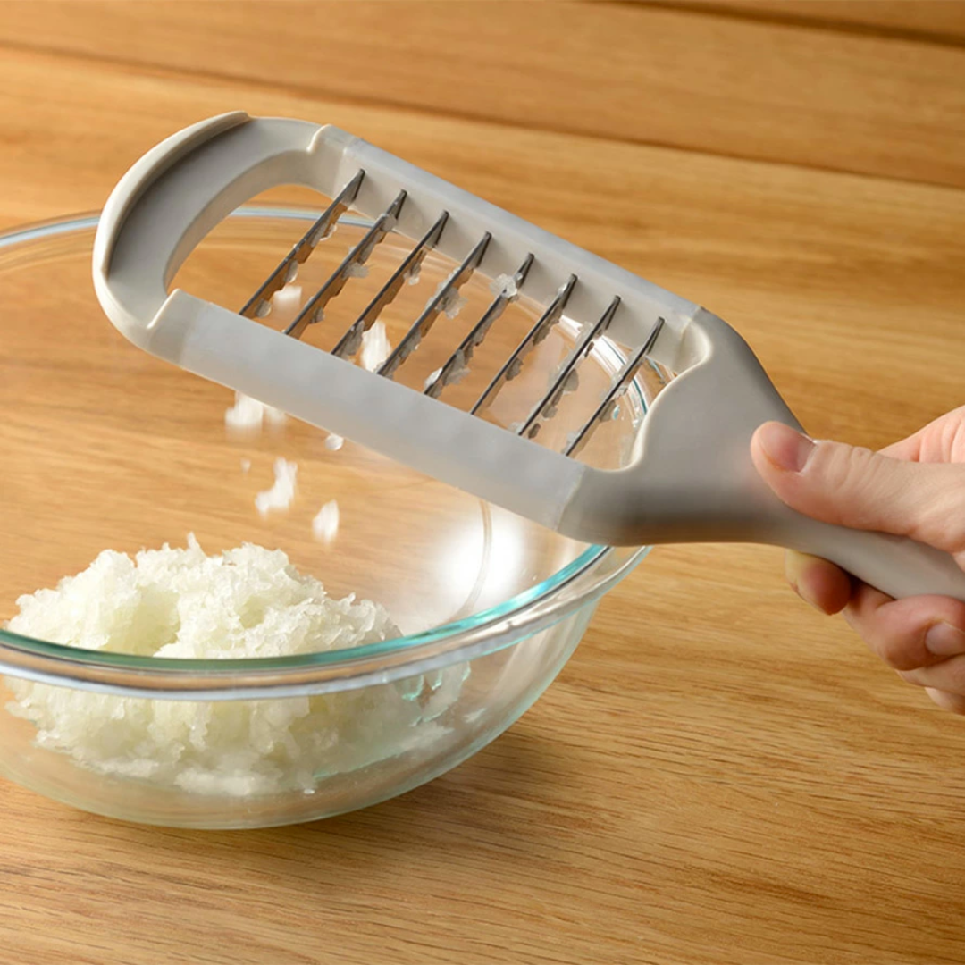 輕鬆製作餐廳熱門的白蘿蔔刨絲漢堡。它也適用於帕瑪森起司。為沙拉增添時尚氣息,您還可以將其加入水煮鍋中,享受白蘿蔔的美味。這款刨絲器也可以輕鬆刨出山藥絲,用來做山藥蕎麥麵或納豆飯。