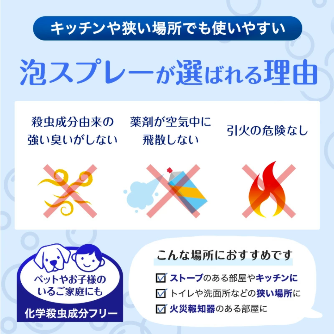 ● 不含殺蟲成分(擬除蟲菊酯、氨基甲酸酯、有機磷酸酯等),即使在有幼兒和寵物的家庭以及廚房檯面附近也可安全使用。