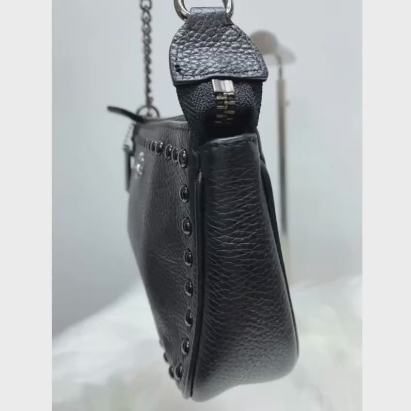 【 In-Stock 】接近未使用 Coach 黑色粒粒鏈帶迷你手拿包
