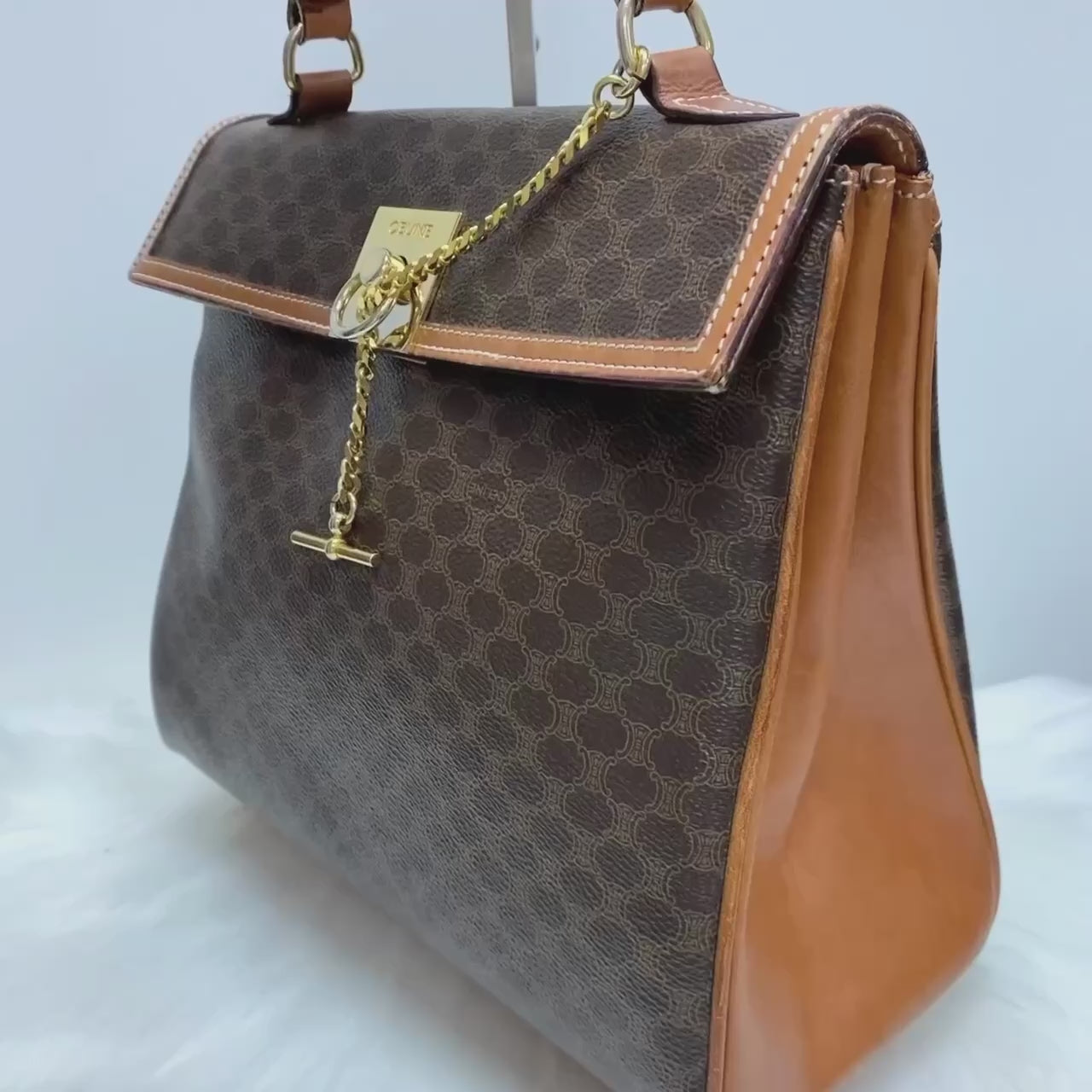 超復古的Celine款❤️整體狀態很不錯,超特別的手袋開關小金鏈設計,是中古的Celine屬有~